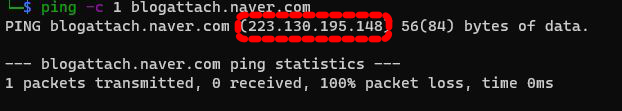 ping 명령어를 사용하면 URL의 IP 주소를 확인할 수 있습니다. 그래서 blogattach.naver.com과 blogattach.naver.net의 IP 주소를 각각 확인하고 whois 명령어로 IP 관련 정보를 확인해 봤습니다.