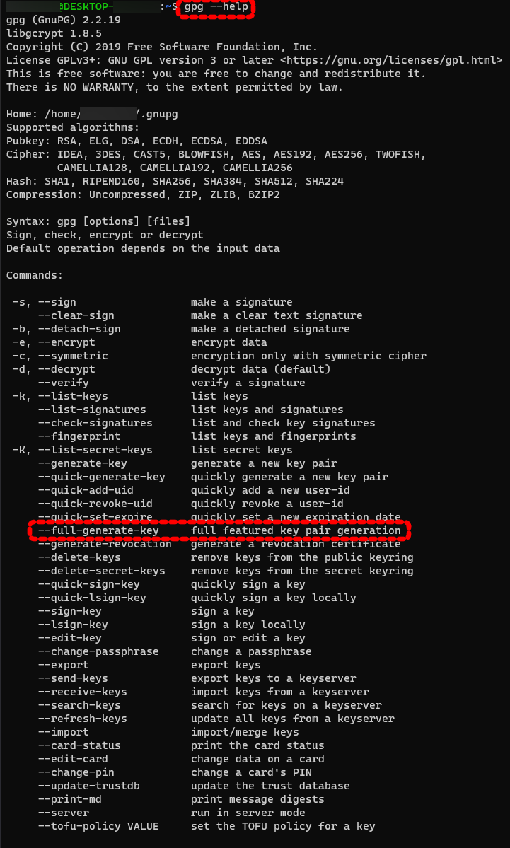 설치가 완료되었다면 gpg --help 명령어를 사용하여 설치된 gpg의 버전 및 명령어 사용법을 먼저 확인해 보세요.