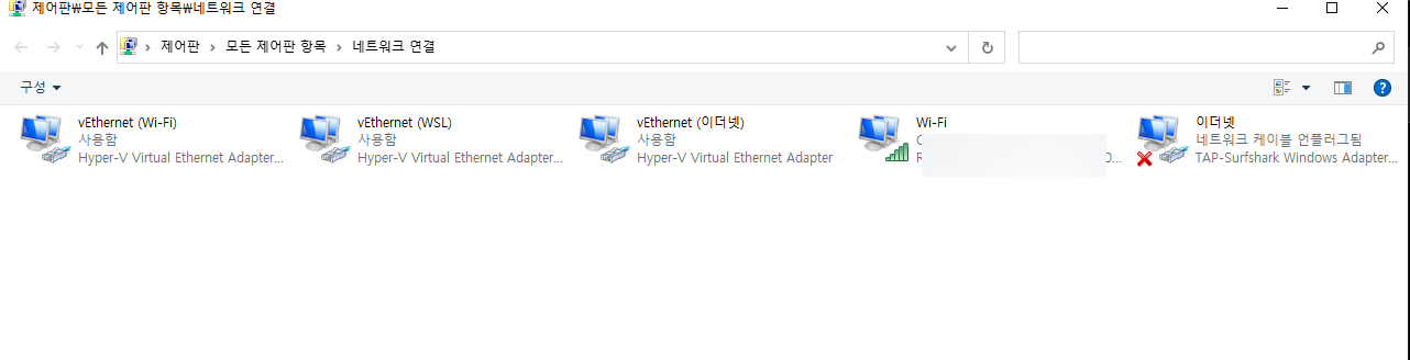 Surfshark VPN을 설치하시면 네트워크 어댑터가 생성됩니다.