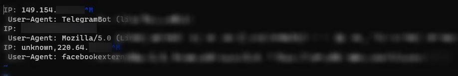 텔레그램에서는 TelegramBot이 카카오톡에서는 kakatotalk-scrap이 먼저 해당 링크를 스크랩했네요. 2명에게 테스트용 링크를 발송했는데, 갑자기 3명 ip가 확인되는 바람에 당황해서 바로 서버를 종료했습니다. ^^.