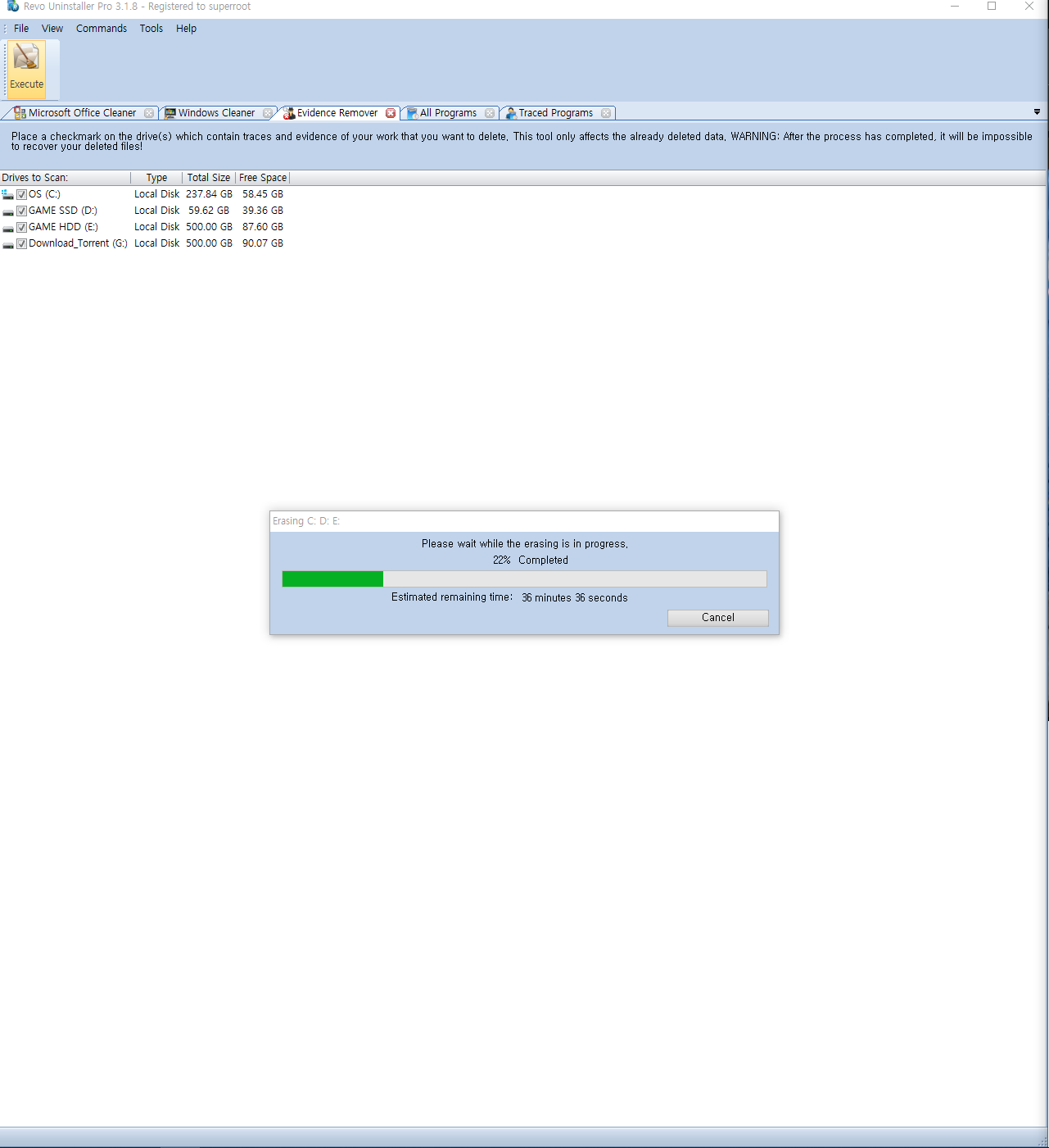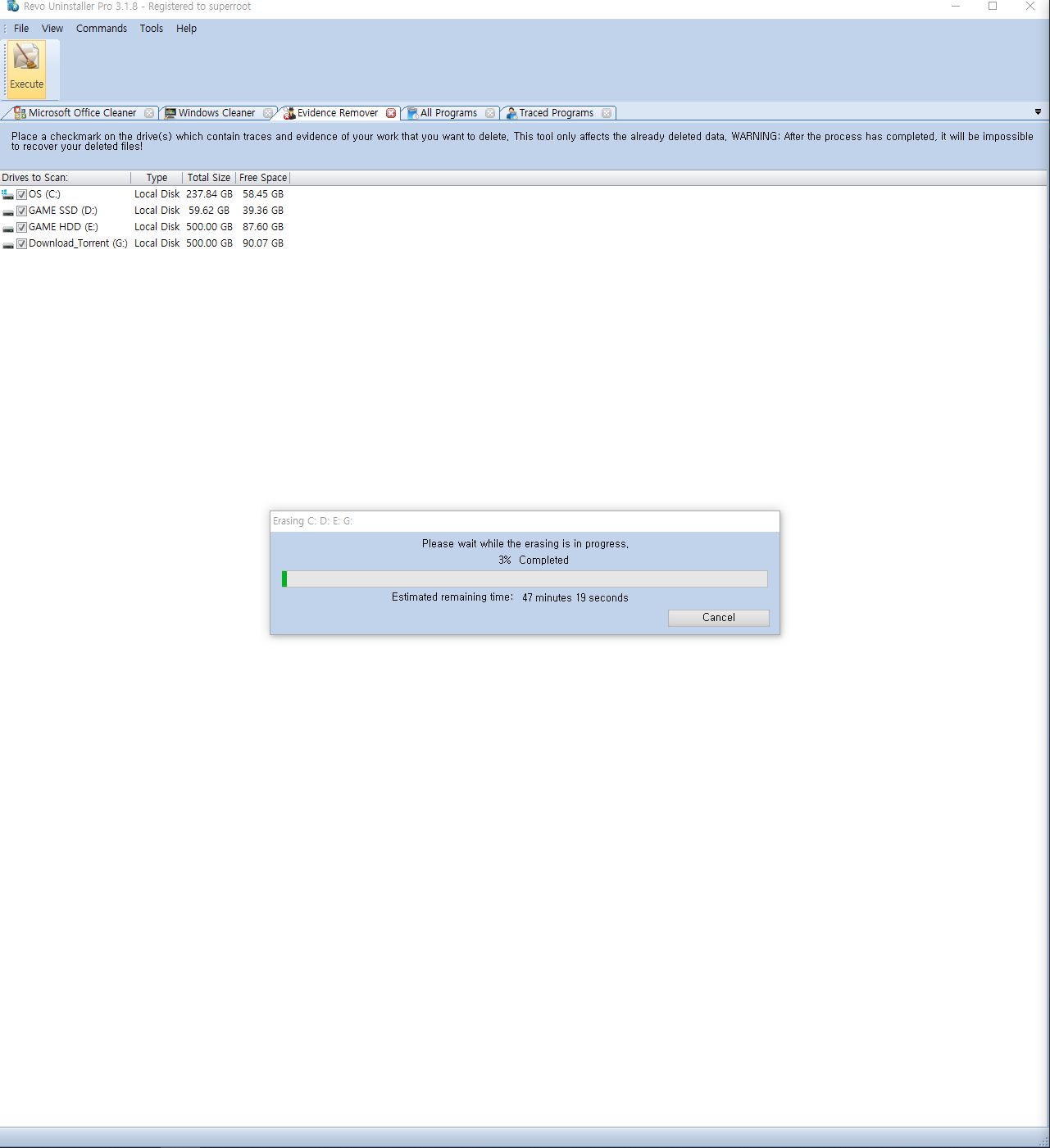 Evidence Remover Tool을 선택하고 원하는 드라이브를 체크합니다.