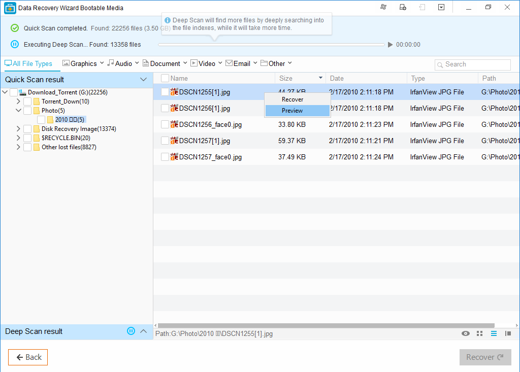 Evidence Remover로 삭제하지 않았다면, 이미지는 복구전에도 바로 Data Recovery 프로그램에서 미리보기 할 수 있습니다.
