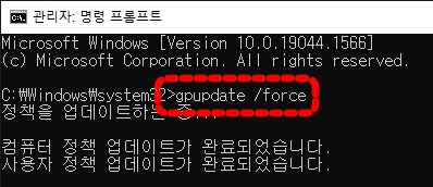 gpupdate /force 명령어를 실행합니다.