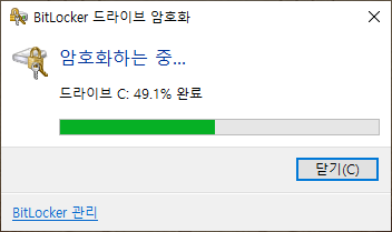 BitLocker 드라이브 암호화 진행도를 확인할 수 있습니다.