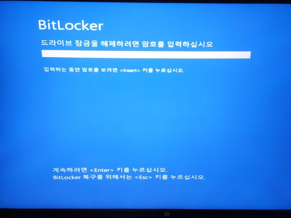 위 이미지는 운영체제가 설치된 C:를 BitLocker로 암호화했을 때 부팅 시마다 보게 되는 암호 입력 화면입니다.