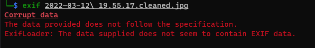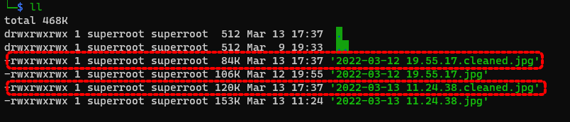 mat2 파일명을 입력하자 바로 cleanded라는 파일이 생성되고, exif 정보가 완전히 삭제되었음을 확인할 수 있습니다.