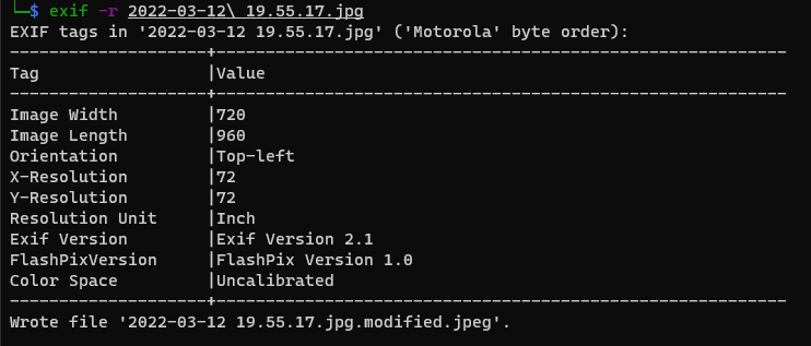 exif 명령어를 사용해서도 exif 정보를 삭제할 수 있습니다.