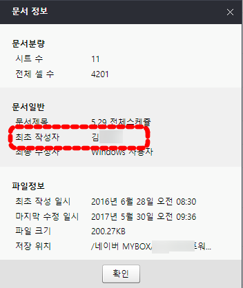 문서의 경우 최초 작성자이름이 자동으로 입력되게 됩니다.