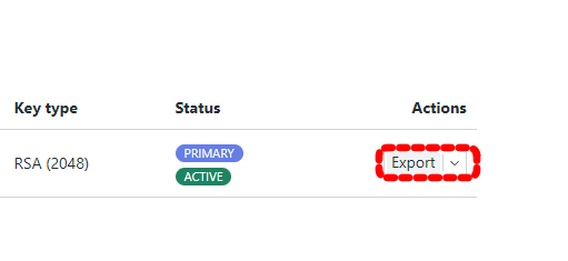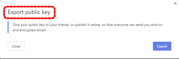 "Go to settings" - "Encryption and keys" - "Email encryption kesy" - "Export"를 눌러서 "Export public key" 메뉴가 나오면 "Export" 버튼을 눌러서 저장할 수 있습니다.