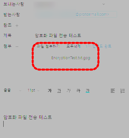 이 암호화 된 파일을 이메일에 첨부하시면 됩니다.