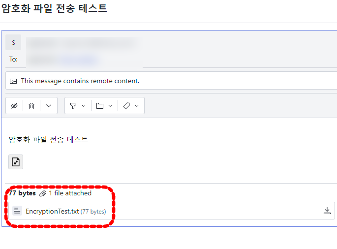 ProtonMail에는 EncryptionTest.txt와 같이 복호화된 파일의 메일로 도착하게 됩니다.