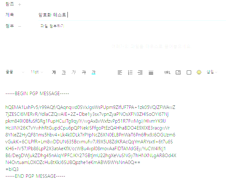 암호화가 완료되면 ----BEGIN PGP MESSAGE -----, ----END PGP MESSAGE ---- 로 나오는데요.