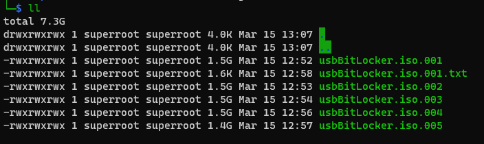 0을 입력하면 1개의 파일로 생성이 가능하며, 분할된 상태로 만들어도 BitLocker hash 추출 시 아무런 문제가 없습니다.