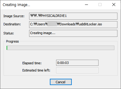 Image Source에 정상적으로 physical drive가 잘 선택되었습니다.