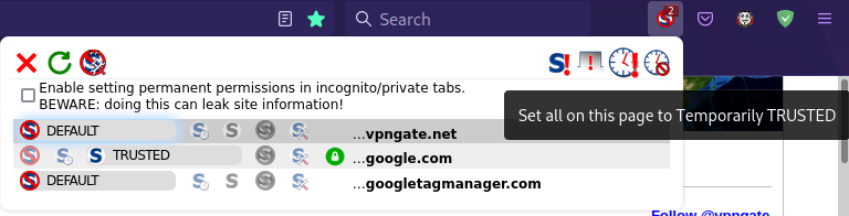 google, facebook과 같이 유명한 사이트는 기본적으로 TRUSTED로 표시되며 스크립트를 차단하지 않습니다.