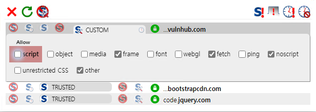 사이트 방문 시 Script가 차단되면 정상적인 사이트 사용이 불가능하게 되는데요, 다음, 네이버, 쇼피몰, 은행처럼 안심할 만한 사이트라면 시계에 느낌표 표시가 있는 아이콘을 클릭하여, 전체 Temp Trusted 조건을 주어 브라우저를 종료시킬 때 까지 임시 허용시킬 수 있습니다.