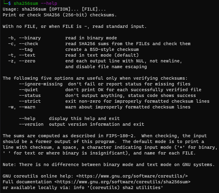 sha256 hash 값을 확인하시려면 sha256sum 파일명을 입력해주시면 확인가능합니다.