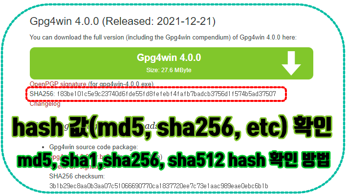 프로그램 공식 다운로드 page에 프로그램과 함께 명시되어 있는 md5, sha256 hash 값을 한 번쯤 확인해 보셨을 것 같습니다.