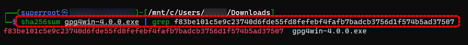 명령어 뒤에 | grep "붙여넣기"로 공식 사이트에서 복사한 hash값을 붙여넣기 합니다.