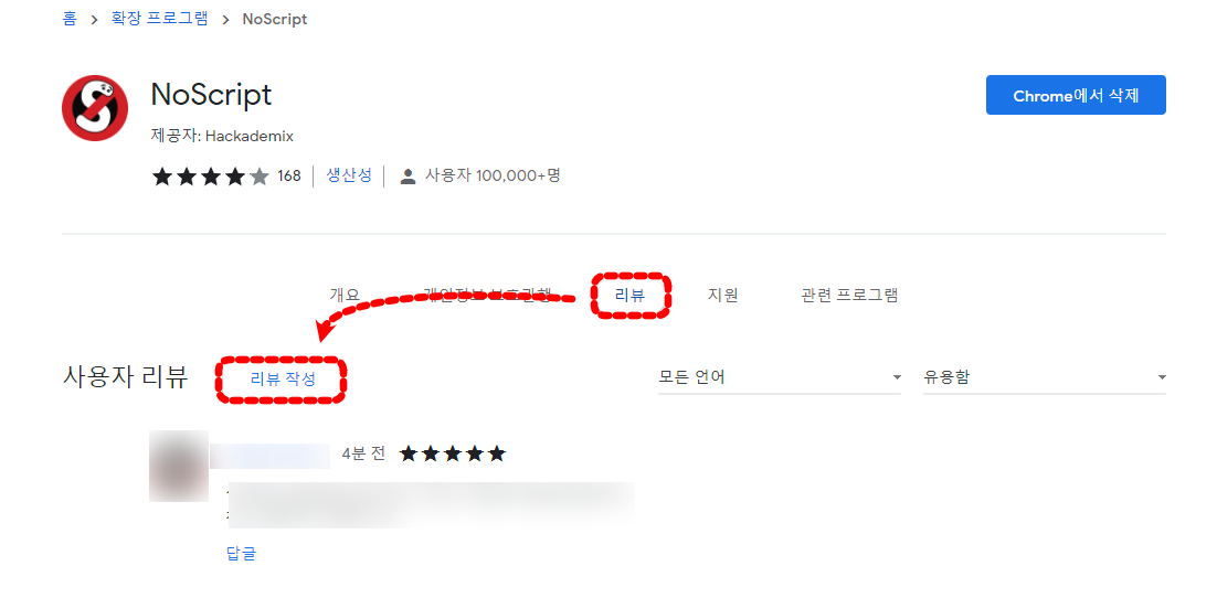 chrome 웹 스토어 리뷰 삭제/수정 방법