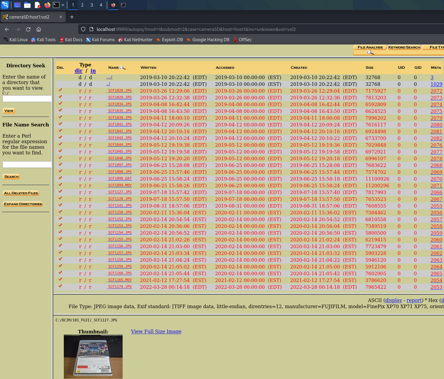 제가 생성한 포렌식 이미지는 디지털카메라의 SD 카드라서 저장된 자료는 JPG 이미지와 MOV 동영상 파일들뿐입니다.