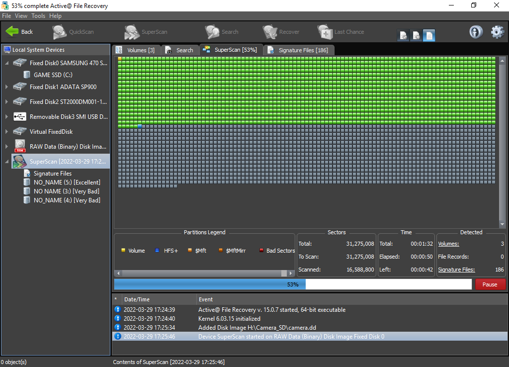 SuperScan을 통해서 이미지 및 동영상을 모두 복구해봤습니다.