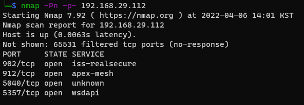 VMWare를 설치해서 사용하고 있는데 902/tcp - iss-realsecure, 912/tcp - apex-mesh 서비스가 VMWare-authentication Damon으로 나오는군요.
