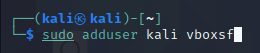 자신의 kali 계정에 vboxsf가 추가되었으면 정상입니다.