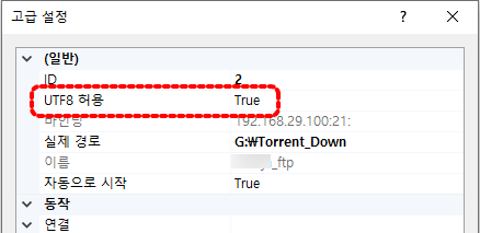 인코딩 관련해서는 UTF8 허용 - True 로 설정된 FTP Server(Windows IIS)입니다.