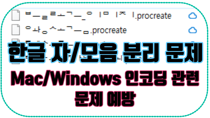 Mac, 아이패드에서 생성된 문서 및 파일명이 한글로 된 경우, 주로 OneDrive를 통해서 Windows 컴퓨터와 동기화 시키는 경우, 한글 자/모음이 분리되어서 저장되는 현상이 발생합니다.