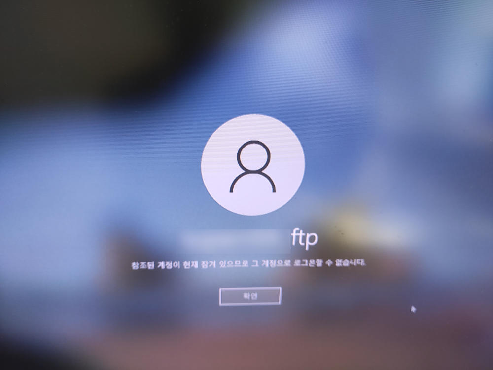 정상적인 비밀번호를 입력했음에도 불구하고, 위와같이 "참조된 계정이 현재 잠겨 있으므로 그 계정으로 로그온할 수 없습니다."라는 메시지가 보이게 됩니다.