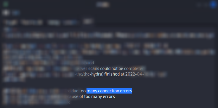 보안점검을 위한 모의 Brute Force를 실행하자 곧바로 프로그램에서 ERROR "all children were disabled due too many connection errors"라고 나오면서 종료되게 됩니다. FTP 서버의 계정이 잠금 상태로 바뀌게 된 것입니다.