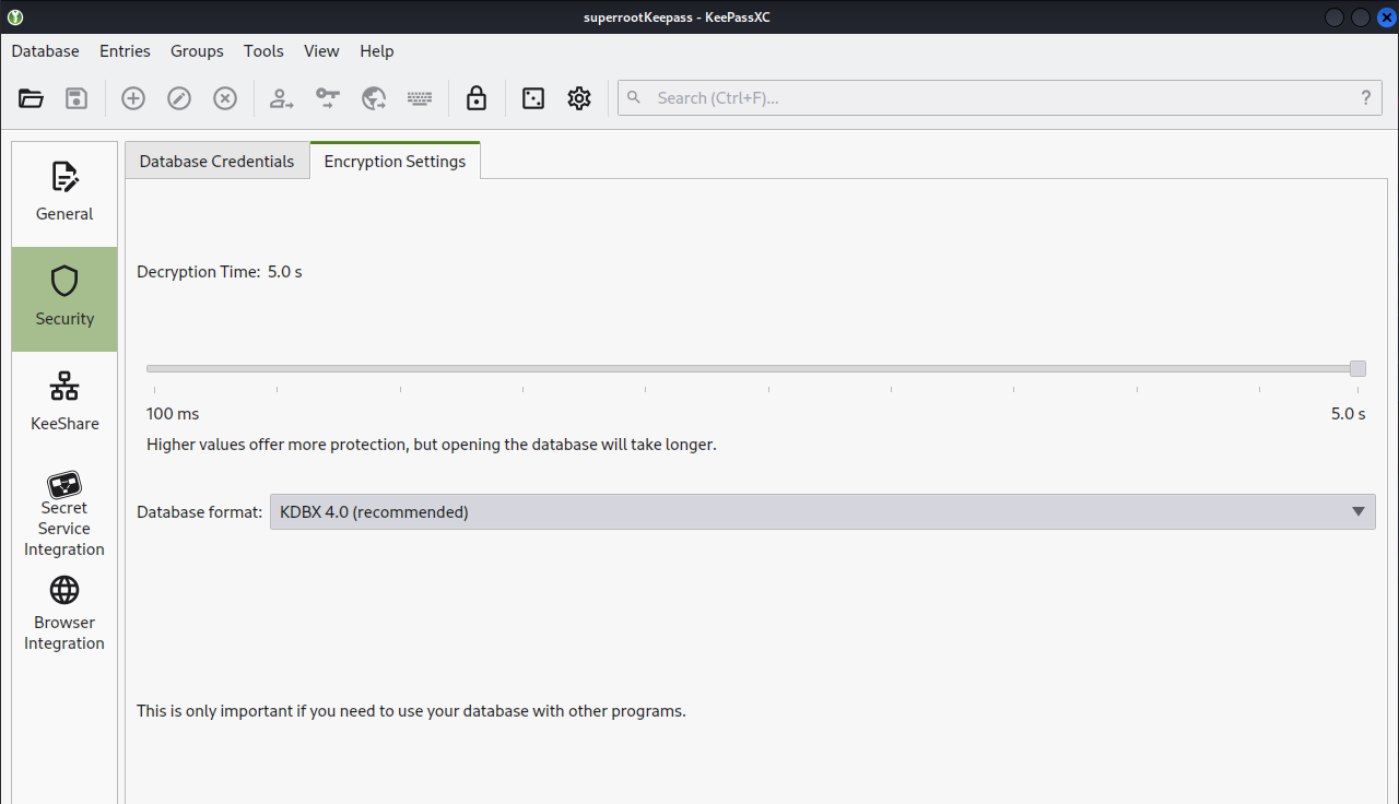 KeePassXC 보안 및 암호화 설정