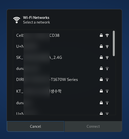 굉장히 많은 AP가 검색이 됩니다. 길 건너 커피샵, PC방, 수학 학원 AP까지 나와서 저도 놀랐습니다.