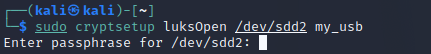 cryptsetup luksOpen /dev/sdd2 my_usb