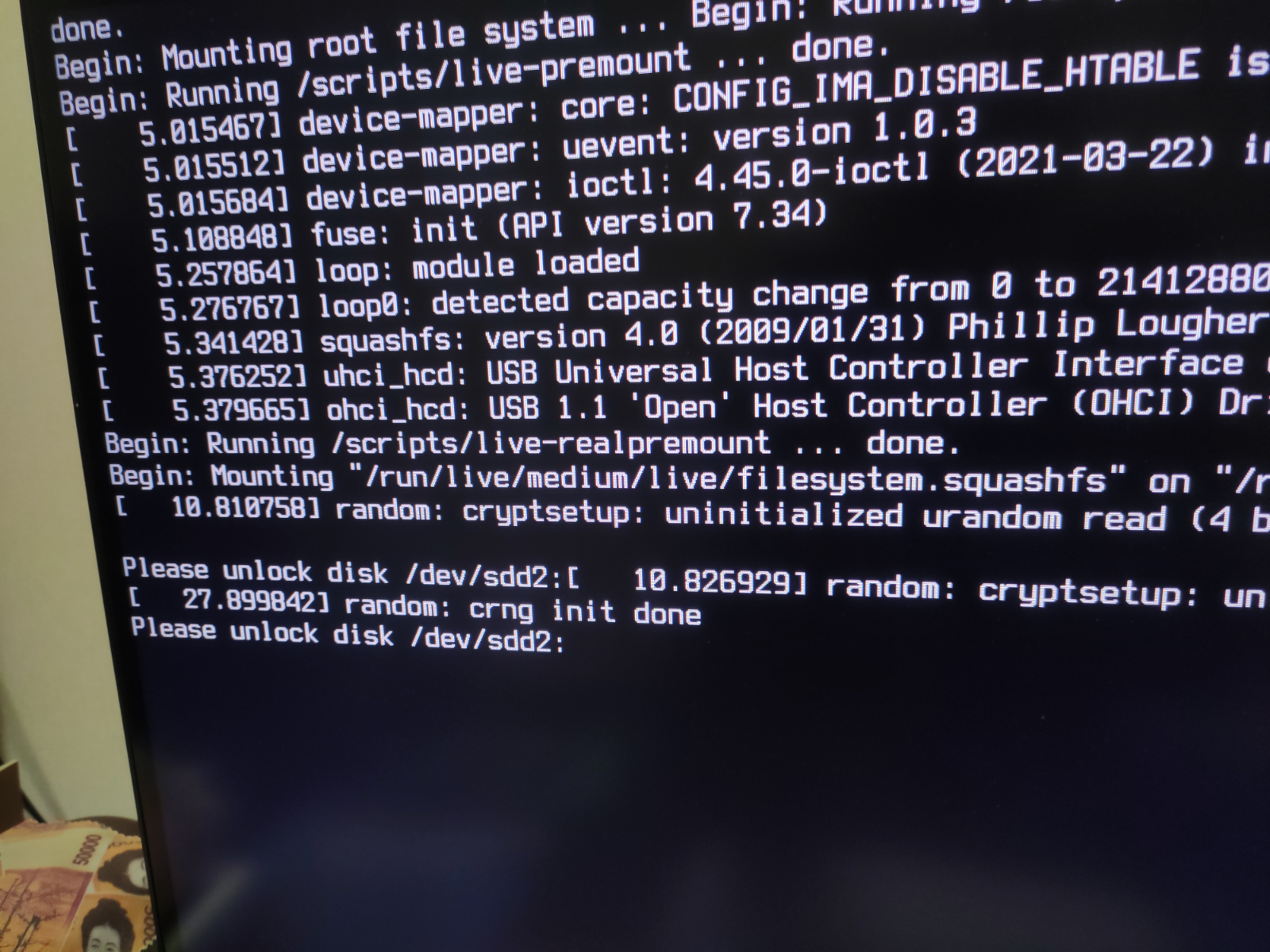 Please unlock disk /dev/sdd2와 같이 나오는 곳에 자신이 설정한 암호를 입력해 주세요.