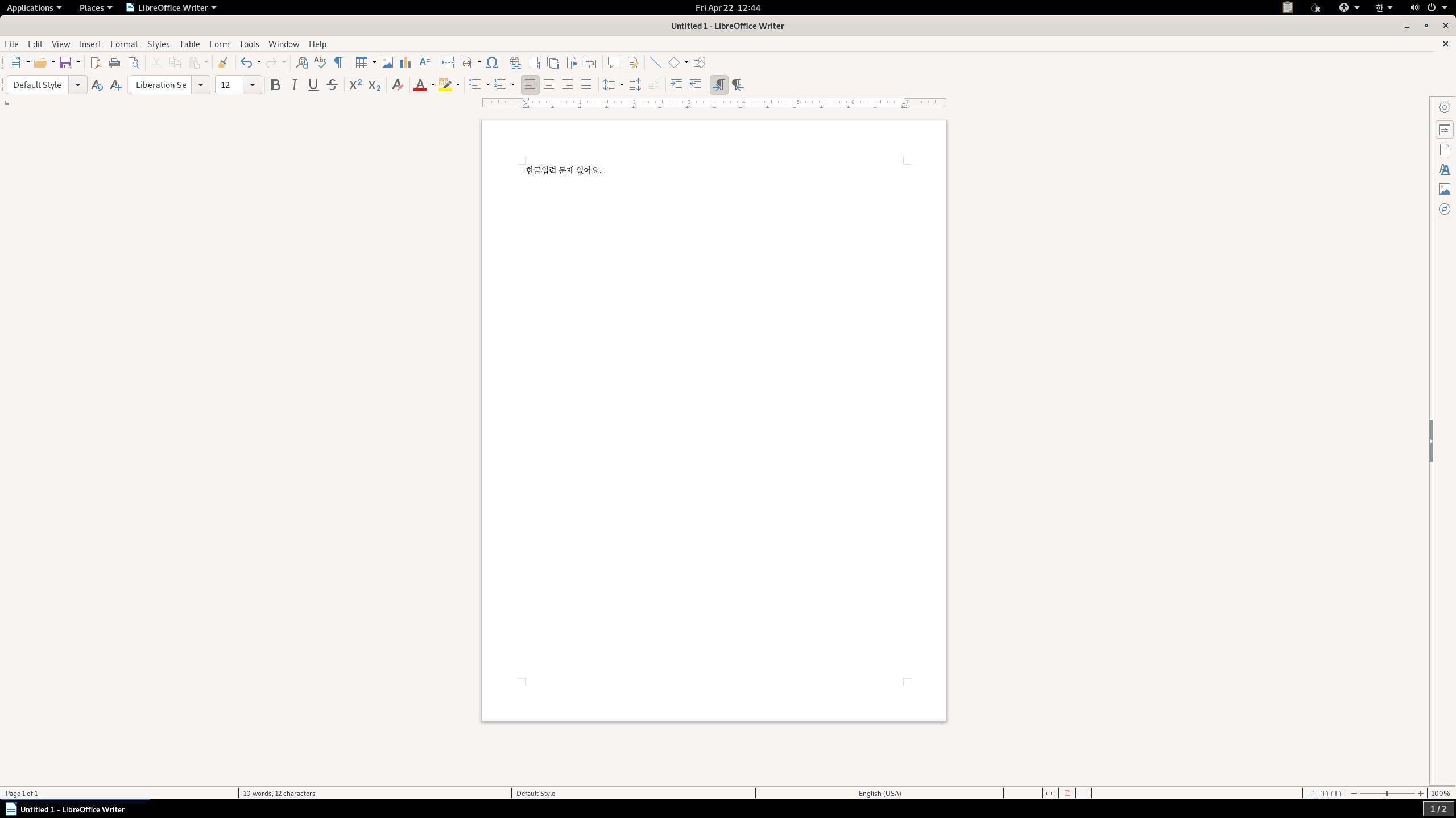 LibreOffice에서 아무런 문제 없이 한글 입력이 가능합니다.