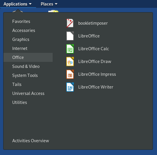 Office 메뉴에서는 무료 오피스 프로그램으로 유명한 LibreOffice가 설치되어 있습니다.