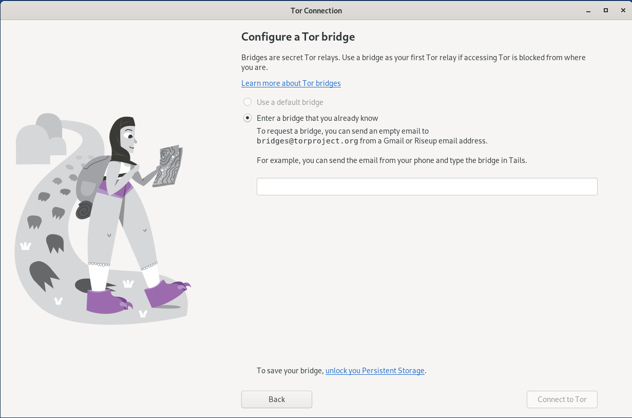 Hide to my local network that I'm connecting to Tor(safer)라는 메뉴는 자신이 연결할 Tor bridge를 직접 입력해서 연결하는 방법입니다.