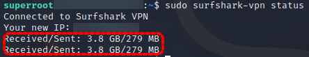 보통 VPN을 사용하면 IP가 바뀌는데, 왜 이런 현상이 생겼을까... 그리고 VPN status / received 용량 확인 시 download에 사용된 용량이 너무나 작게 나오는 것이 수상했습니다.