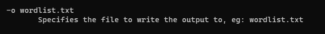 -o 옵션은 crunch를 통해서 만들어지는 파일을 저장할 때 사용하는 옵션입니다. -o filename.txt와 같이 입력하여 filename.txt 파일로 wordlist를 생성할 수 있습니다.