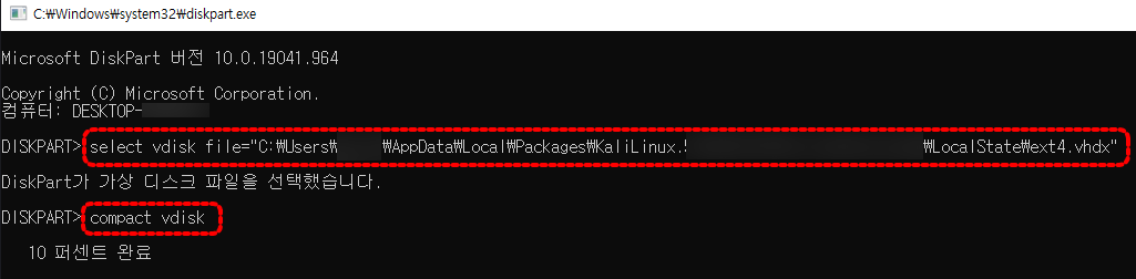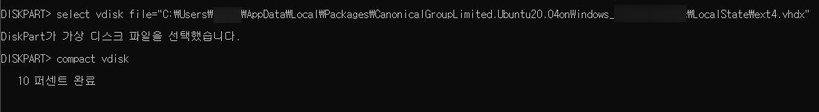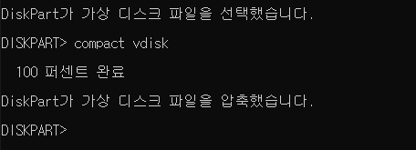 ext4.vhdx diskpark 명령어로 용량 줄이기