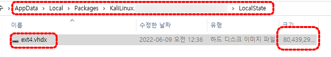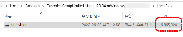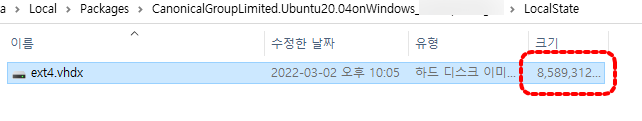 ext4.vhdx 위치 및 용량 확인하기