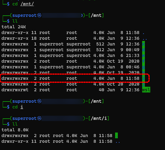 그러다 외장하드(i 드라이브)를 끈 상태에서 신기하게도 /mnt/i/에 백업 폴더 및 파일이 있는 것을 확인했습니다.