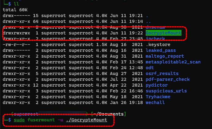 sudo fusermount -u ./GocrypteMount