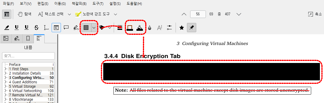 필기, 주석, 가리기 상태를 그대로 pdf에 저장해서 문서를 배포하는 경우, 다른 도구를 사용하여 주석을 삭제하면 가려진 부분이 보일 수 있기 때문입니다.