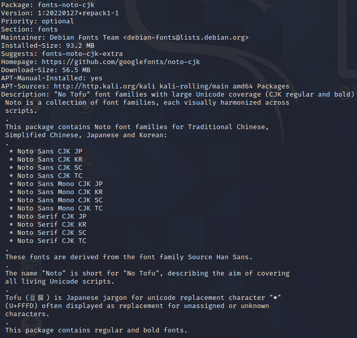fonts-noto-cjk는 Noto family fonts인데 중국어, 한국, 일본어 관련 Noto Sans 폰트들이 설치됩니다.