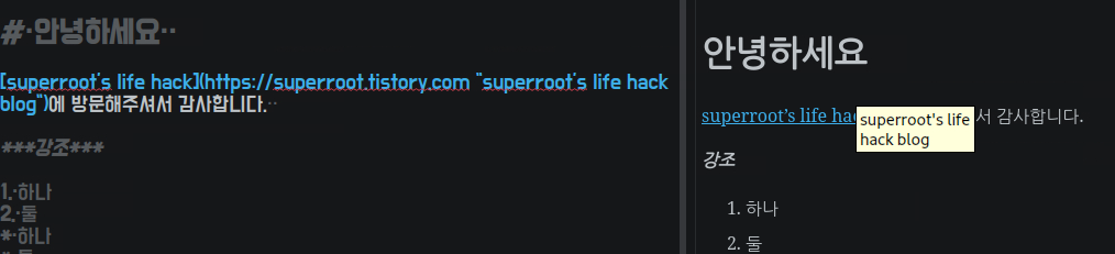 우측에 HTML Preview를 통해 Markdown 문서의 실시간 미리보기, 꼭 필요한 기능입니다.