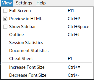 Sidebar는 Outline, Session Statistics, Document Statistics, Cheat Sheet, 총 4개의 메뉴로 구성되어 있습니다.