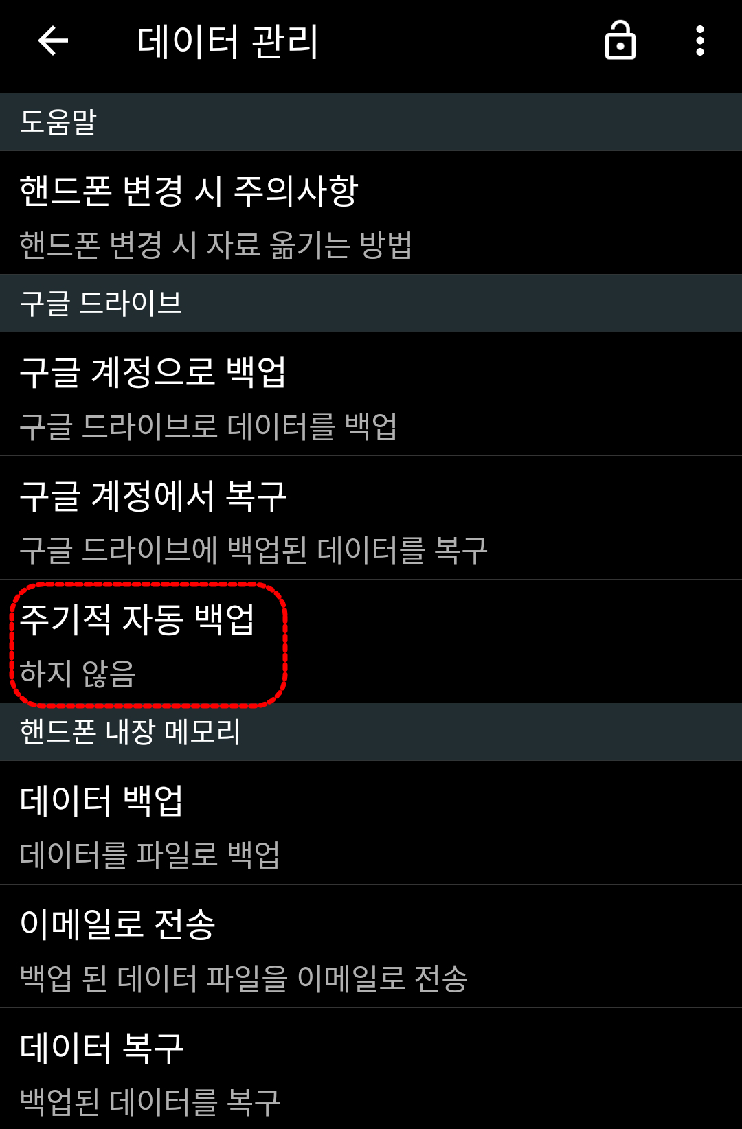 일단 데이터를 백업하고 암호화 한 이후에는 자동으로 백업되는 기능을 비활성 시켜두는 것이 중요합니다.